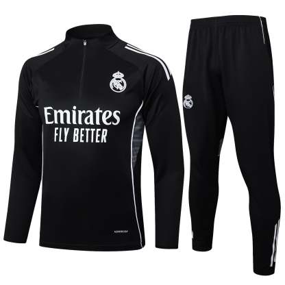 2025-26 Real Madrid Black training suit(White text) Adults Or Children