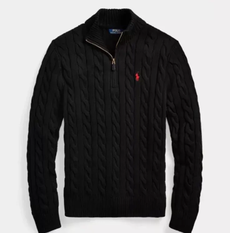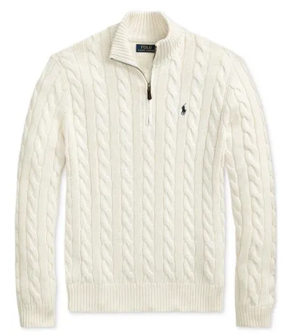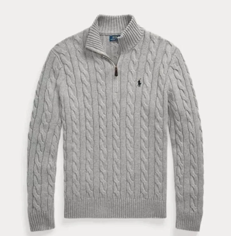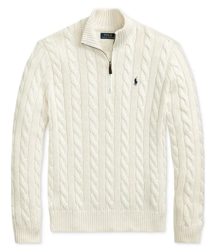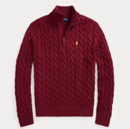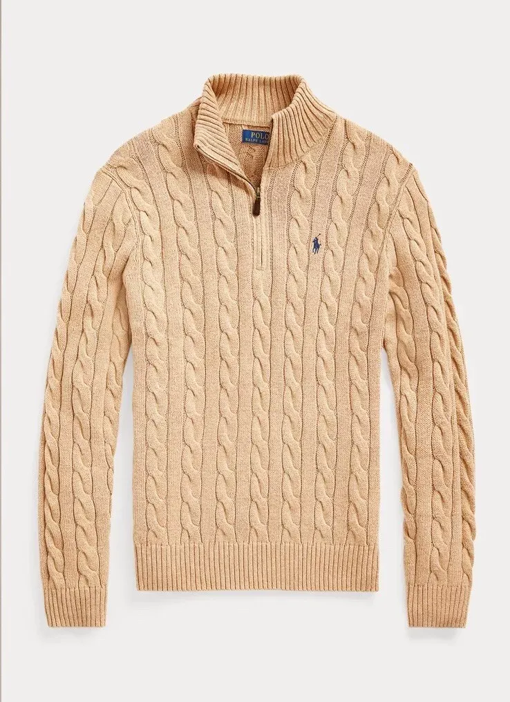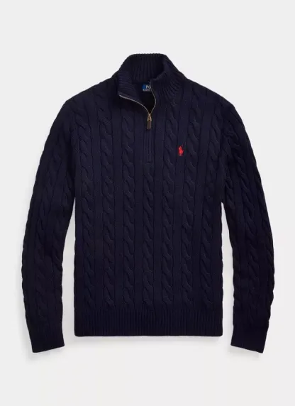 Cable knitted cotton quarter zipper sweater - strick pullover