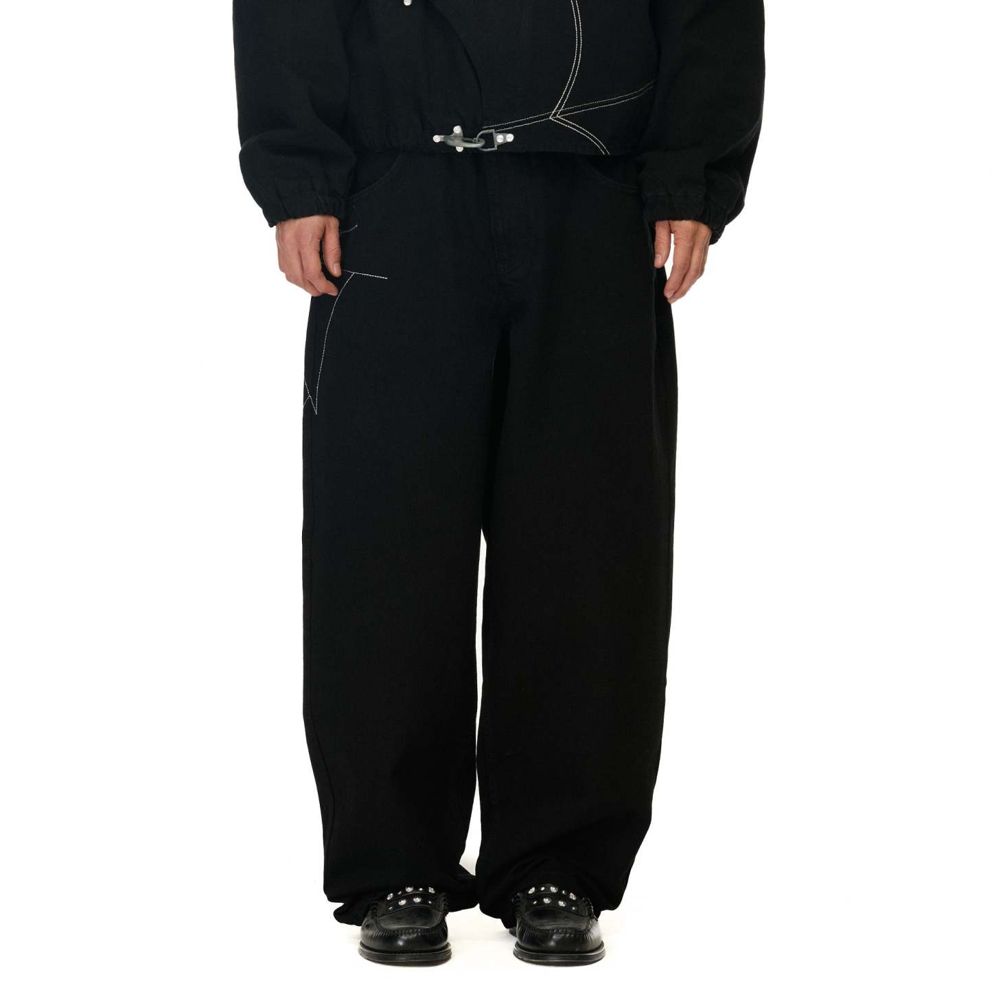 14,5oz raw denim / 100% cotton / embroidery on front and back / embossed printed leather patch / wash inside out / fits true to size