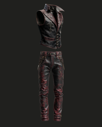 autumn and winter fashion cross embroidered leather vest and leather pants two-piece suit 7527
